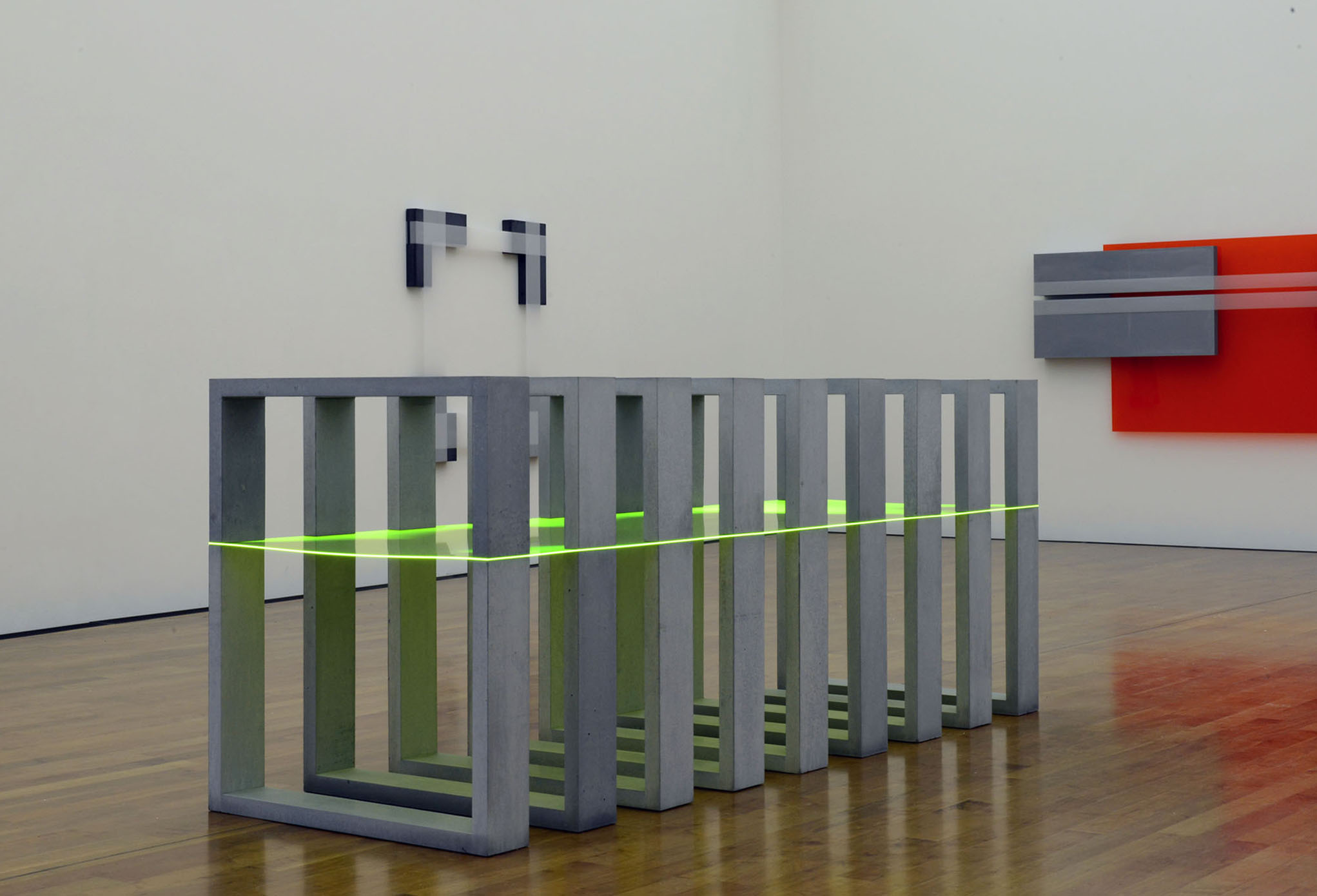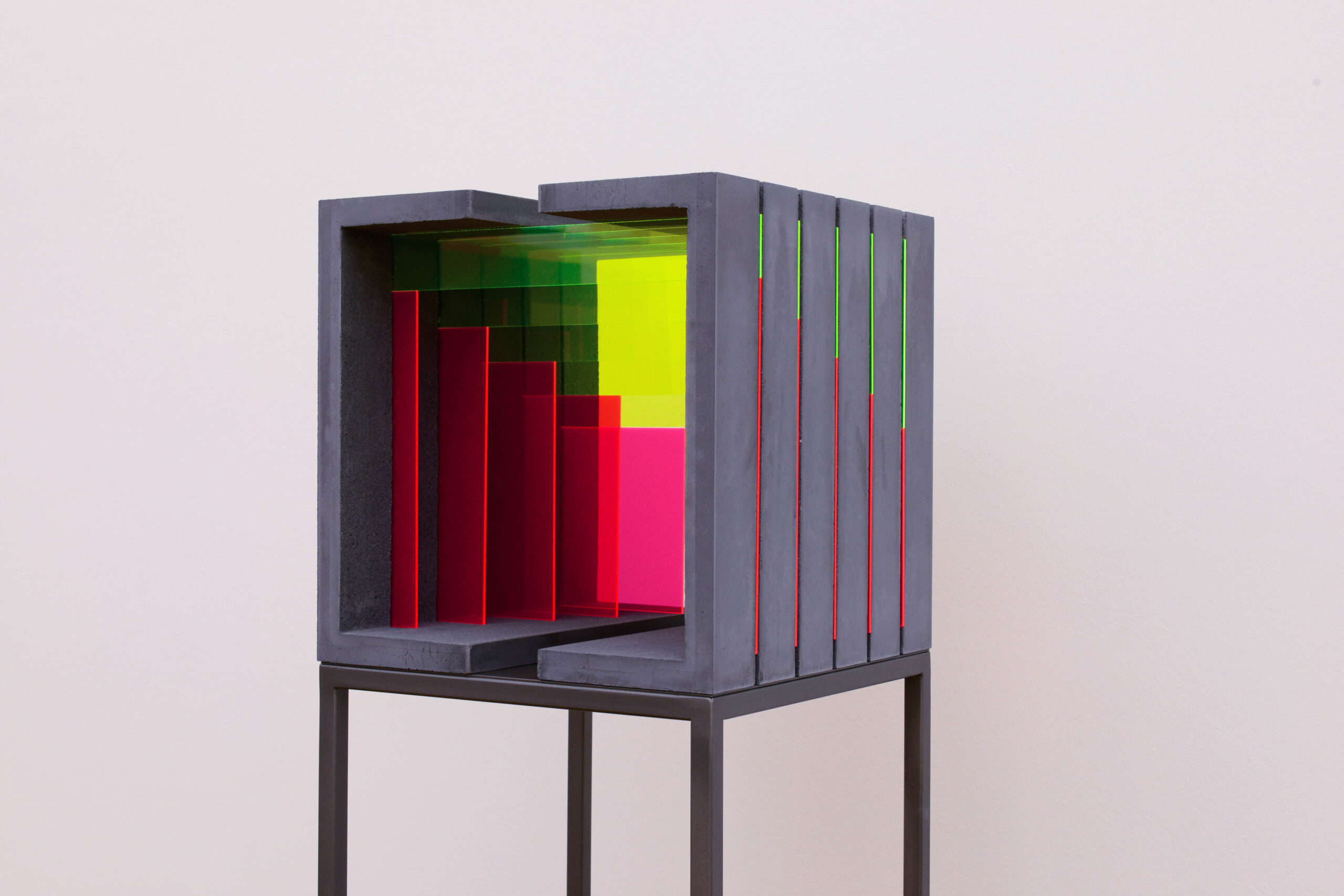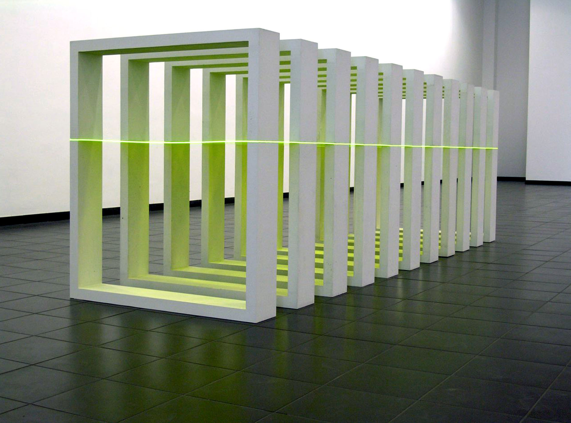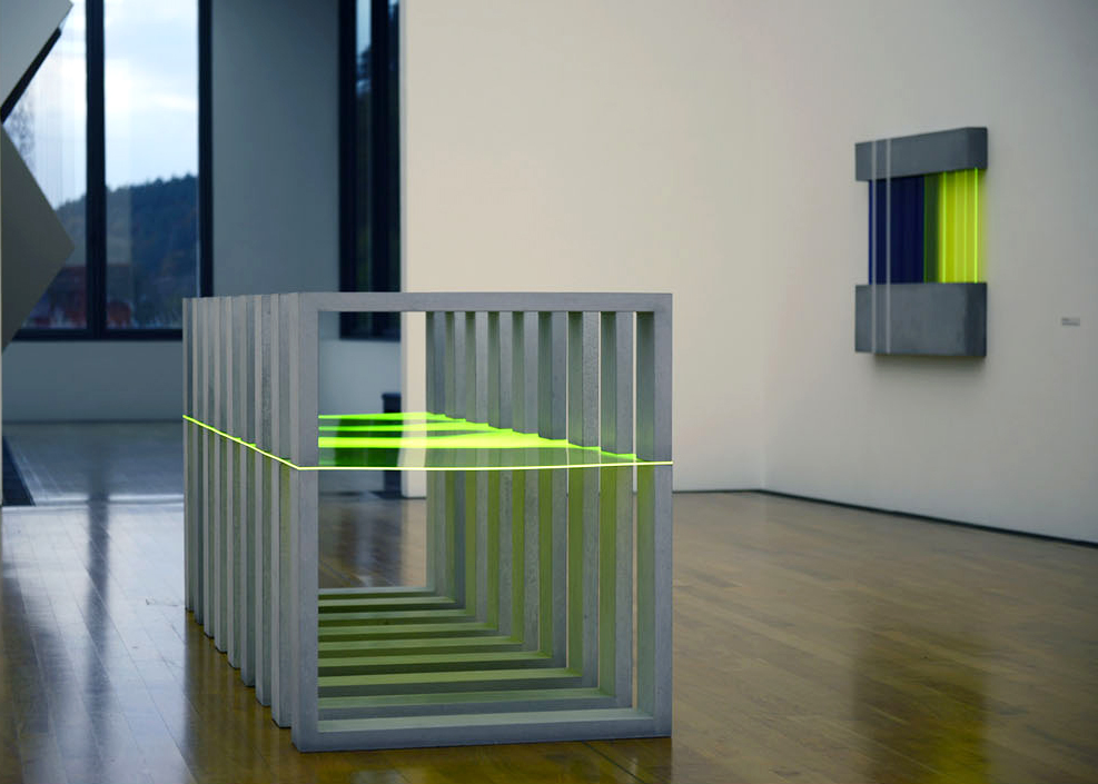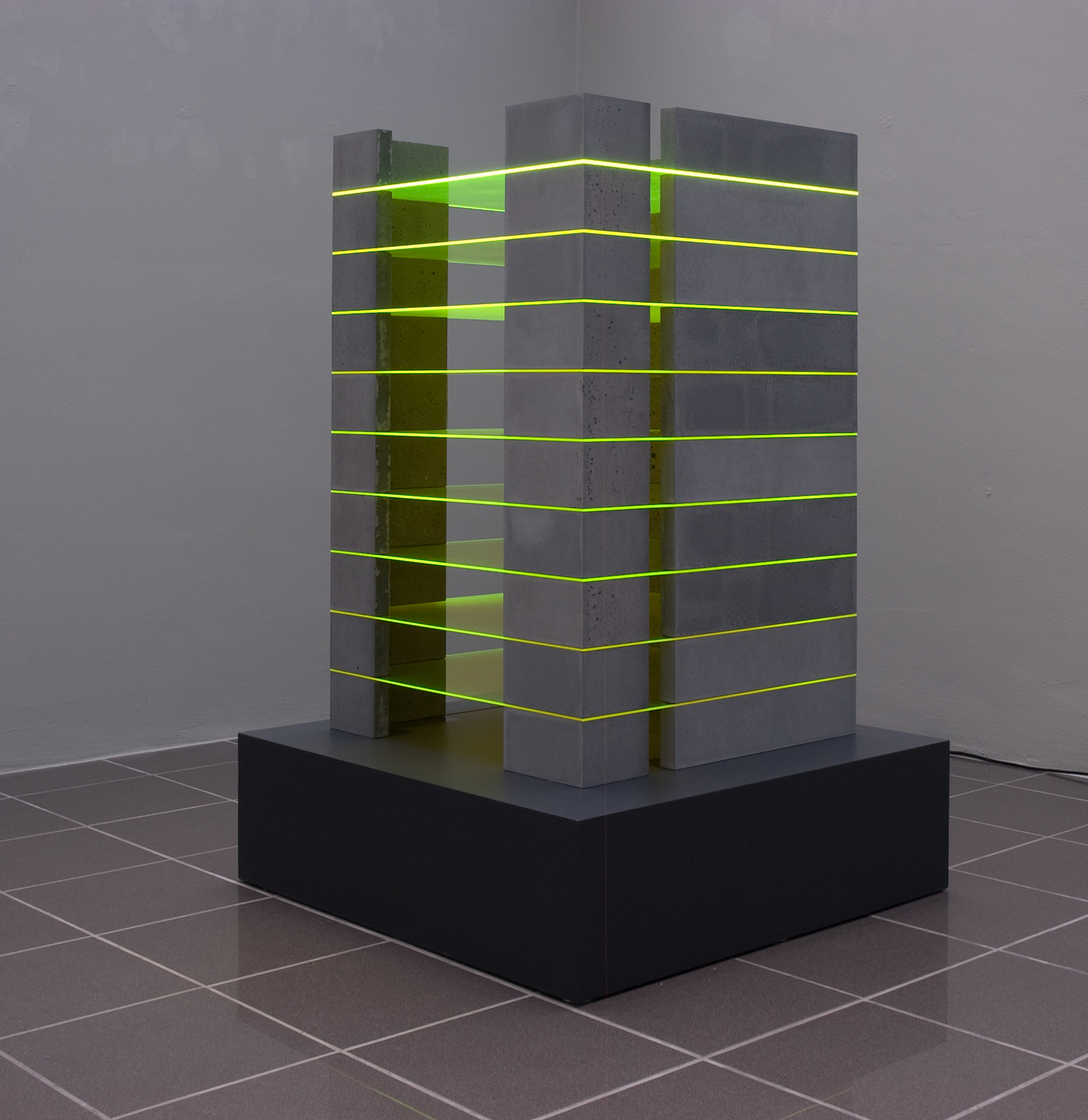 grauer Beton, grünes Acrylglas117 x 100 x 385 cm