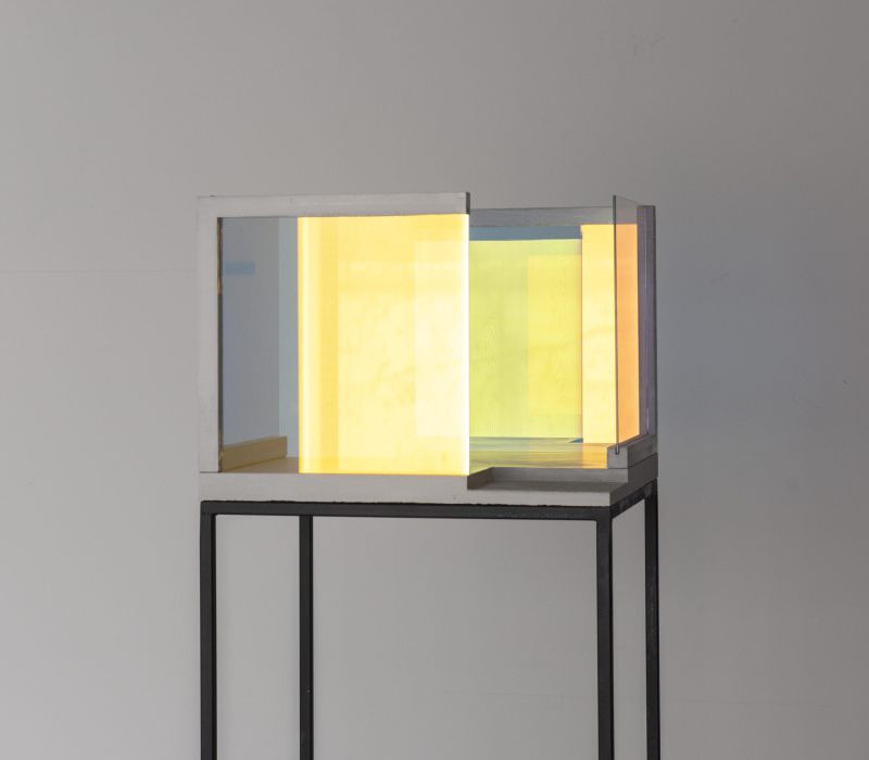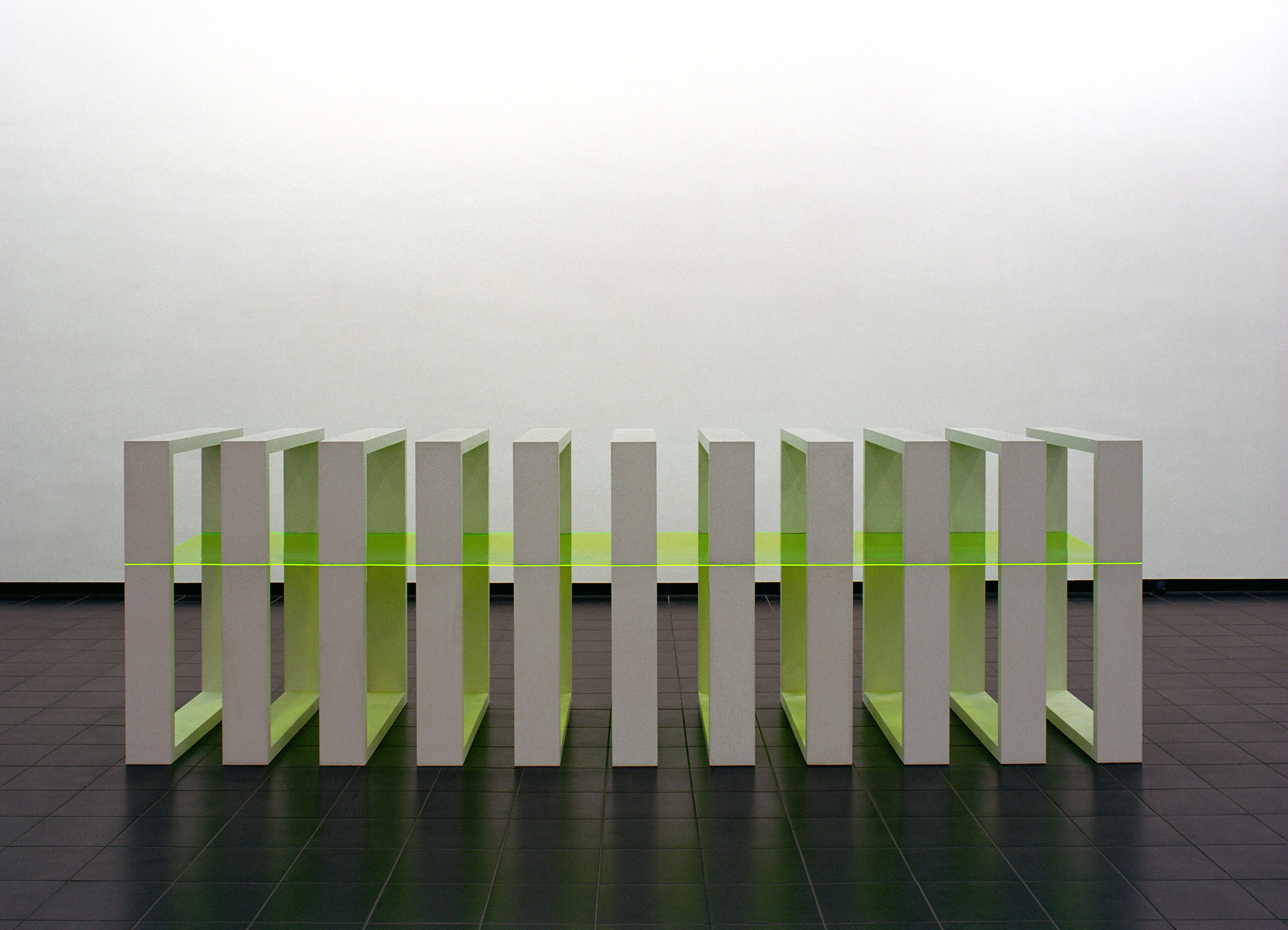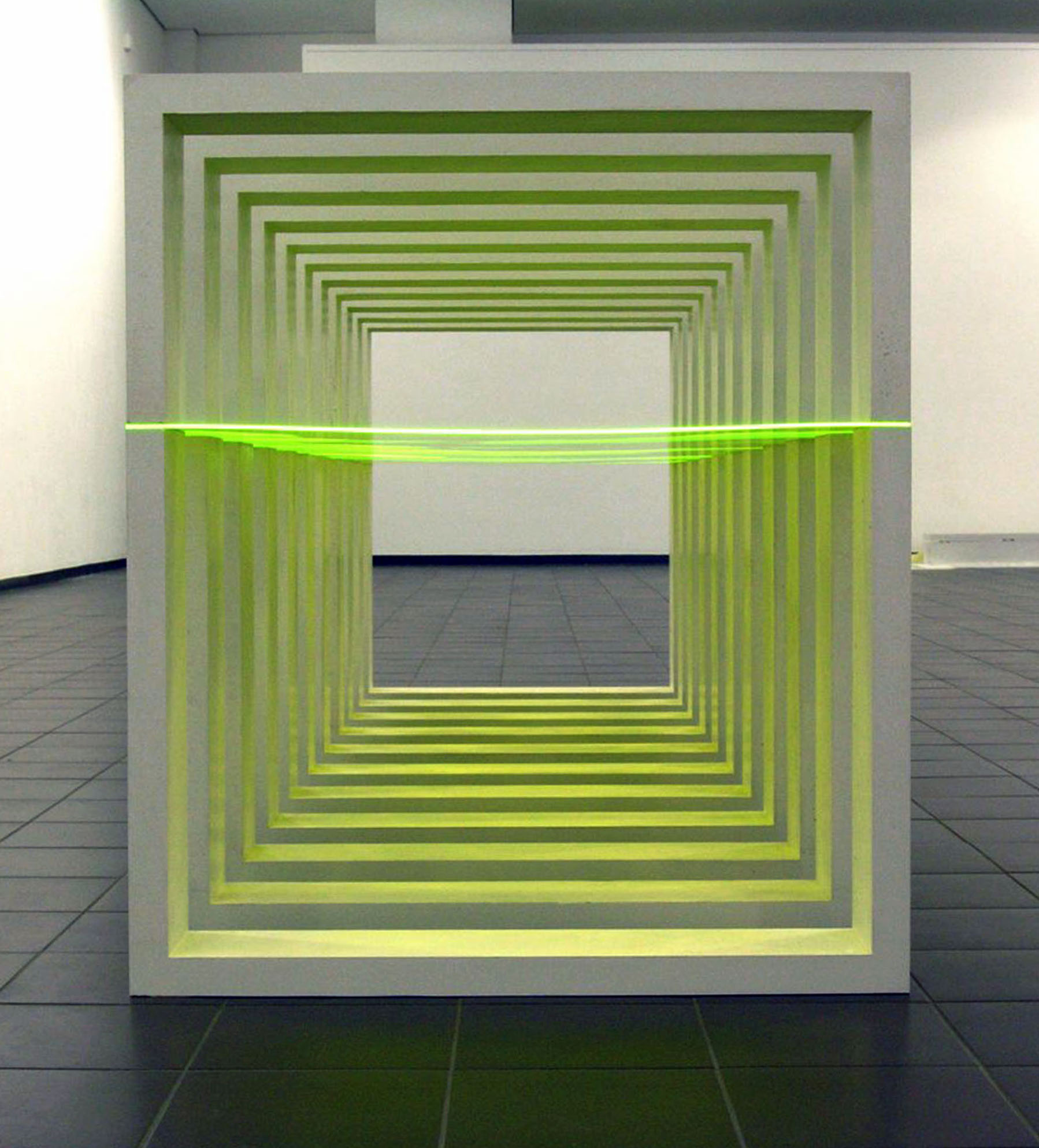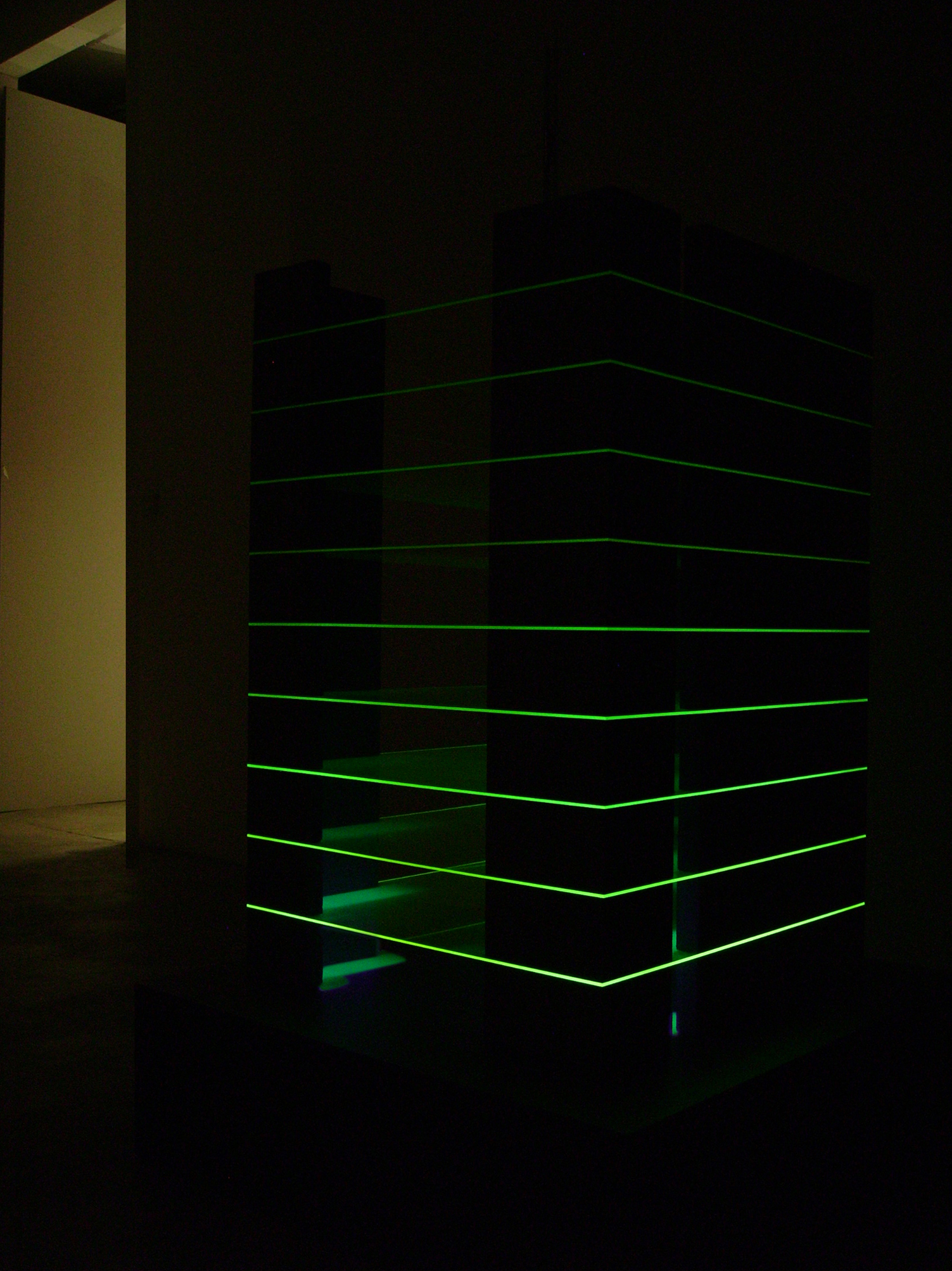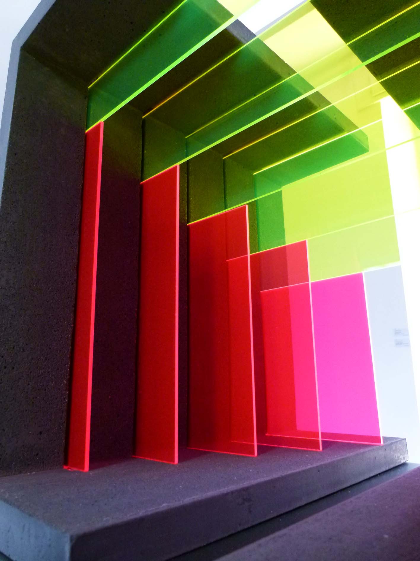 grauer Beton, grünes Acrylglas117 x 100 x 385 cm