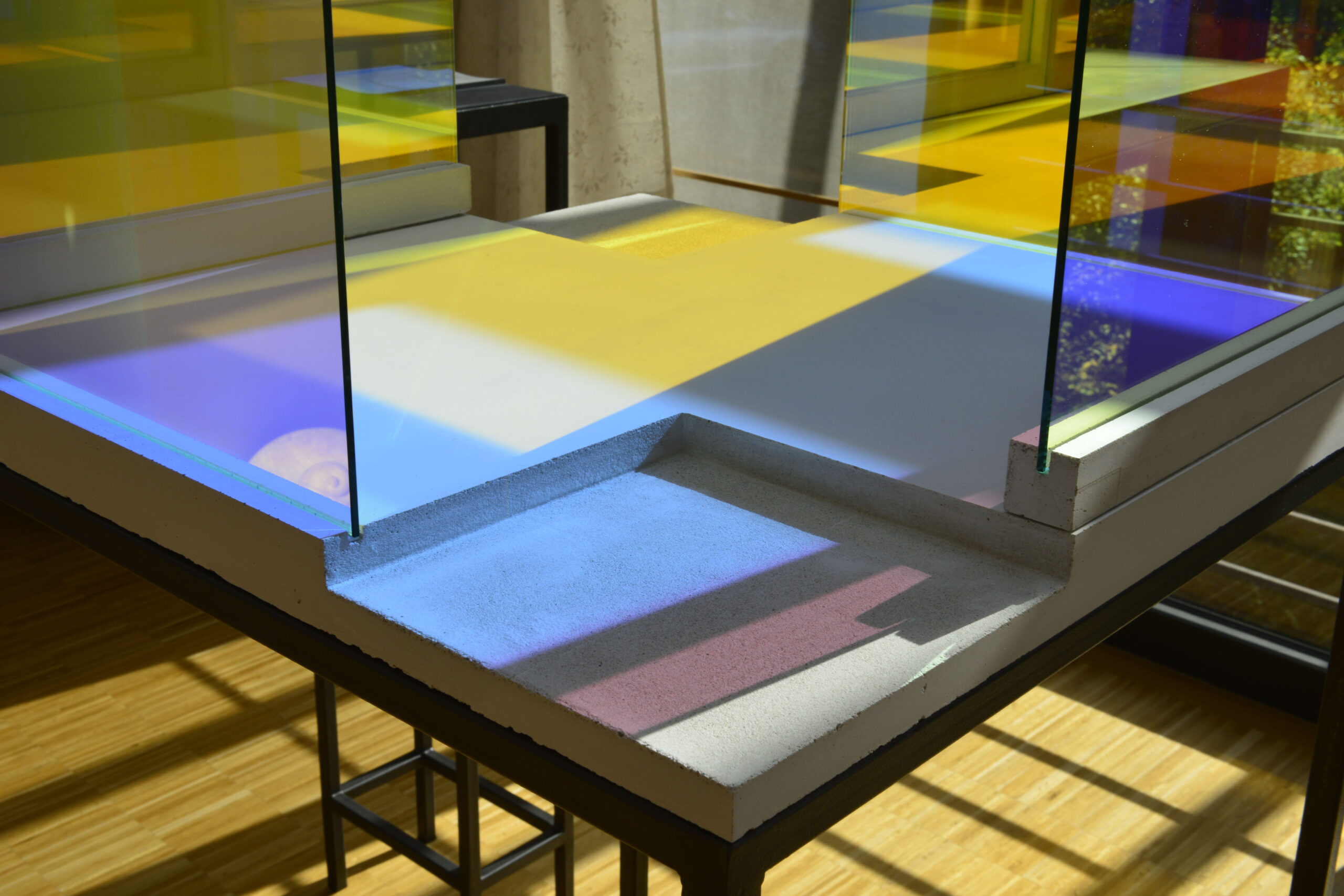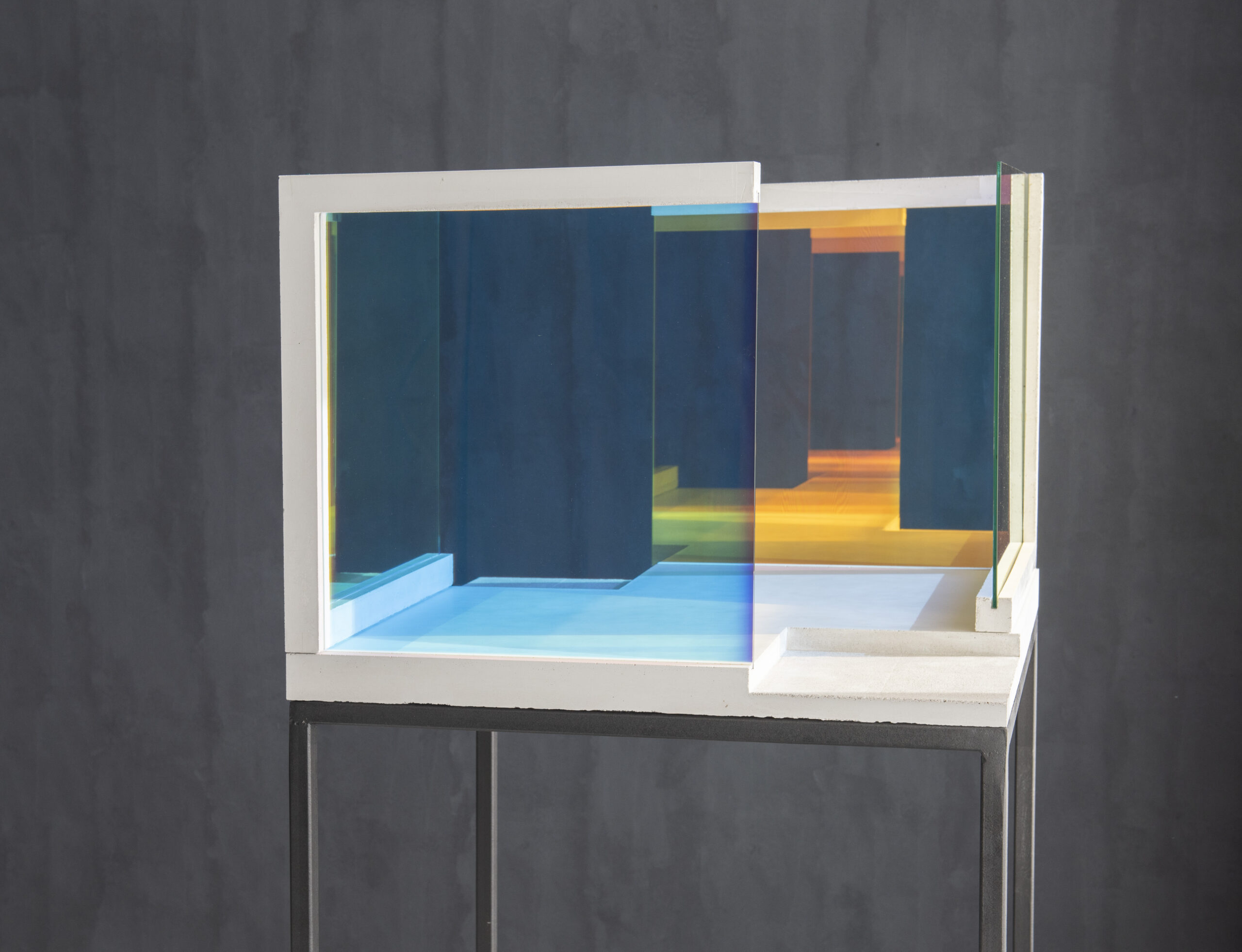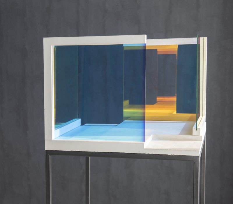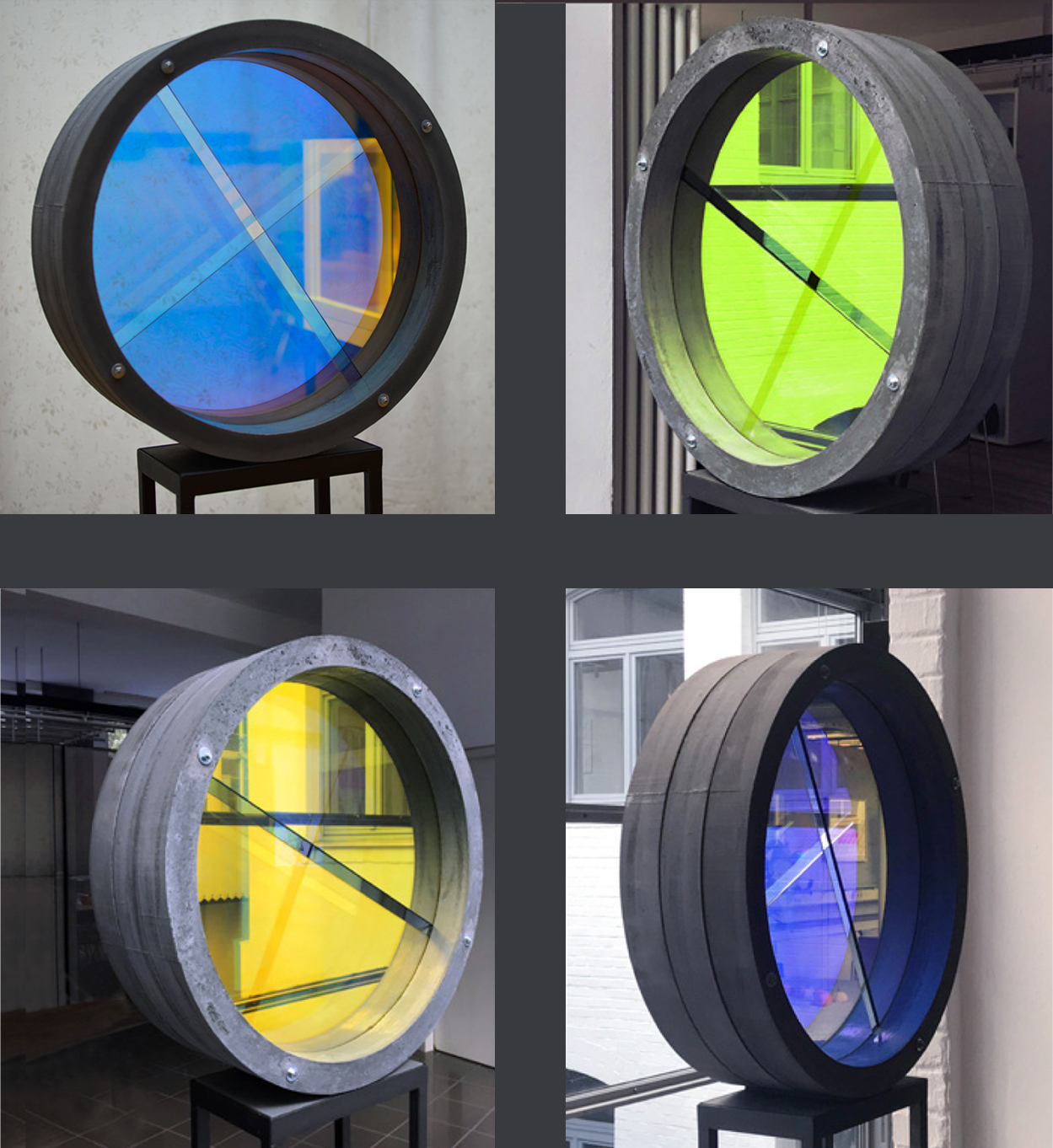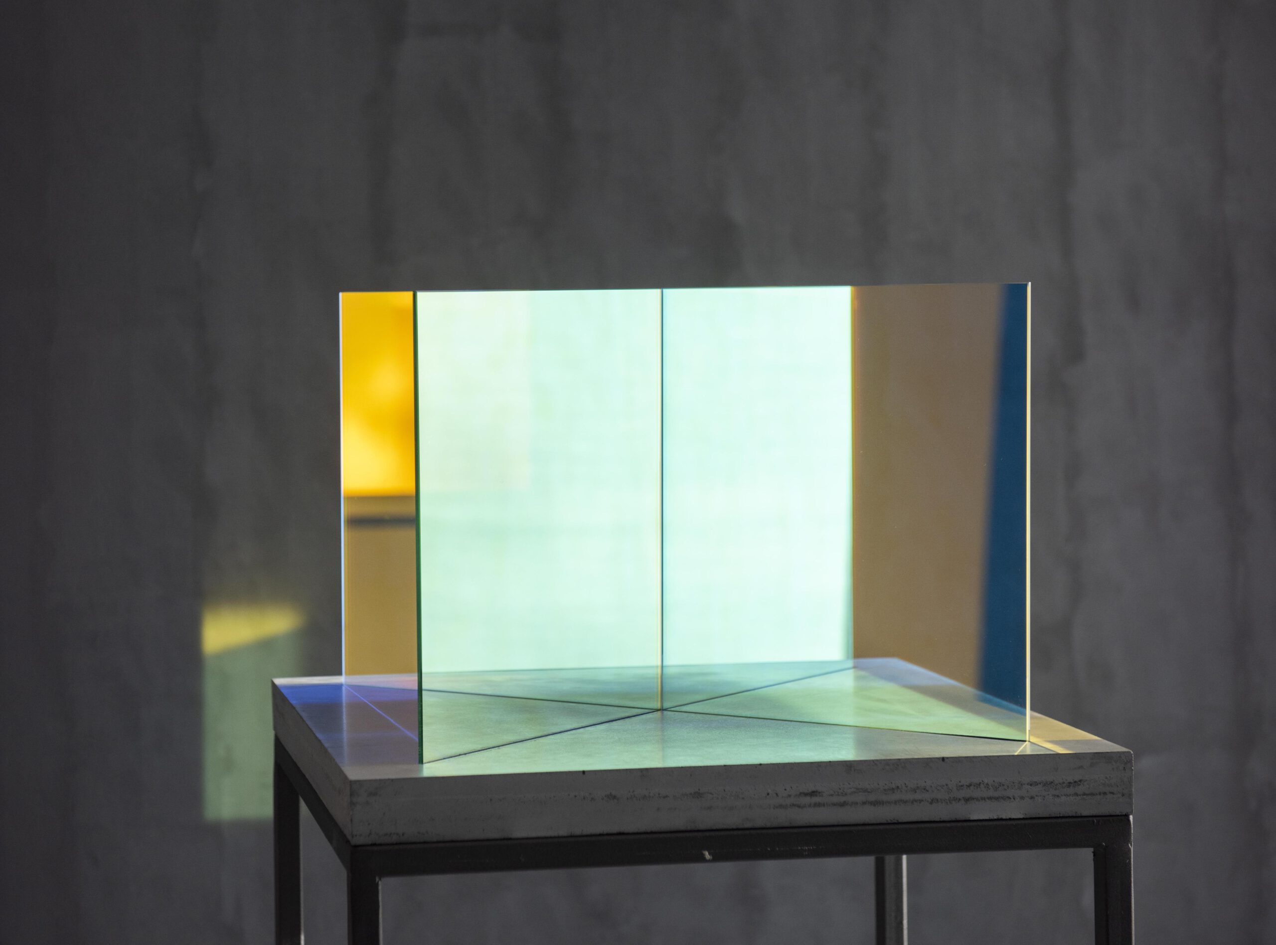 grauer Beton, grünes Acrylglas117 x 100 x 385 cm